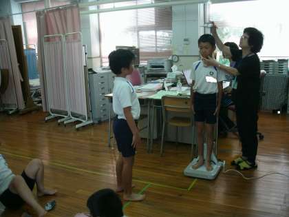 1年生と3年生の発育二測定がありました。3年生の測定の様子です。
