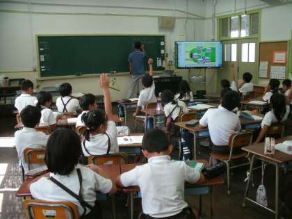 2年1組は、算数の学習をしていました。「何人のっていますか。」という問題を、いろいろな映像を見ながら考えていました。