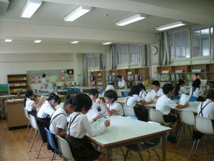 4年1組は、図書室で読書をしていました。今日は、木曜日なので図書館ボランティアさんが終日図書室に在室して、本の整備をしてくださいます。