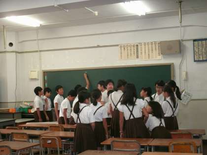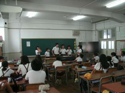 6年生は、赤組と白組に分かれて、全員リレーの作戦会議をしていました。