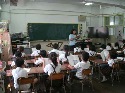 2年2組は、国語の学習をしていました。「あしたも友だち」の範読を聴いていました。