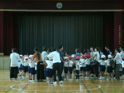 6時間目は、PTA主催の「親子で遊ぼう集会」が行われました。1年生は、体育館で「じゃんけん列車」をしました。