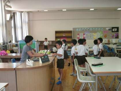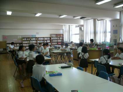 1年1組は、図書室で読書をしていました。