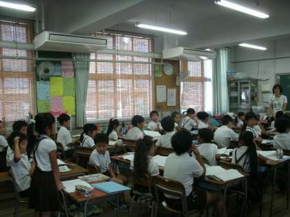 3年生は、社会科の学習をしていました。スーパーマーケットとコンビニエンスストアを比較していました。それぞれの便利な点を考えて意見を出し合っていました。