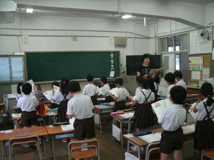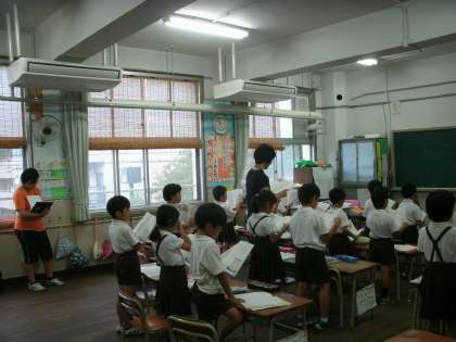 担任の先生の範読に続いて、はきはきした声で読んでいました。