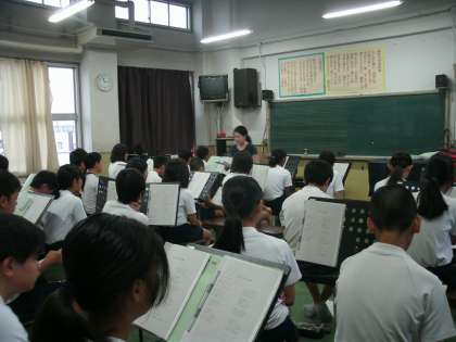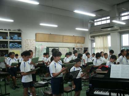 6年生は、音楽室で「HEIWAの鐘」の合唱練習をしていました。この曲は、修学旅行の際、広島で合唱します。