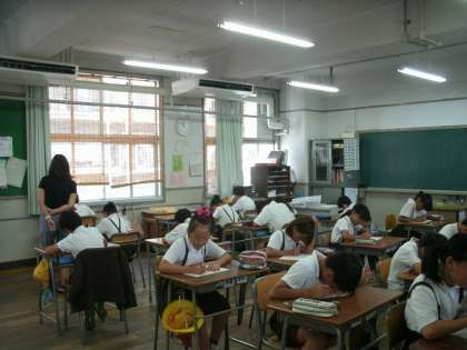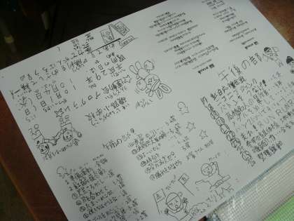 4年生2組は、運動会のプログラムを配布しているところでした。プログラムの説明の後は漢字の20問テストが始まりました。