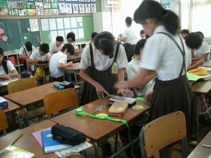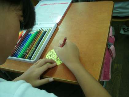 6年生は、運動会で1年生とのおんぶリレーで使う「メダル」作りをしていました。