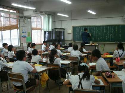 4年1組は、国語の学習をしていました。「ごんぎつね」のごんと兵十の気持ちを、「ごん日記」「兵十日記」という形式で書いています。それぞれが書いた日記を伝え合っていました。