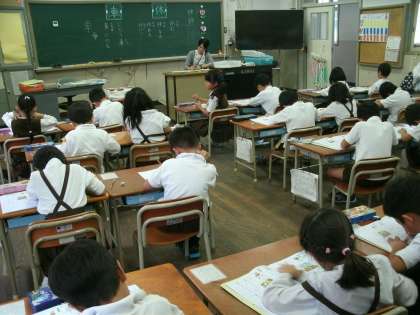 1年2組は、漢字の学習をしていました。「休」と「車」を練習していました。
