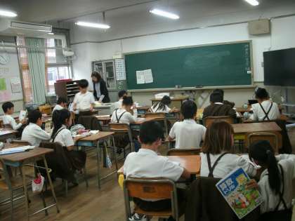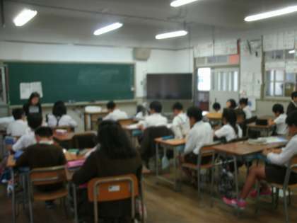 4年2組は、漢字テストや算数ドリルのまちがい直しを各自が静かにしていました。教えあいながら考えているグループもありました。