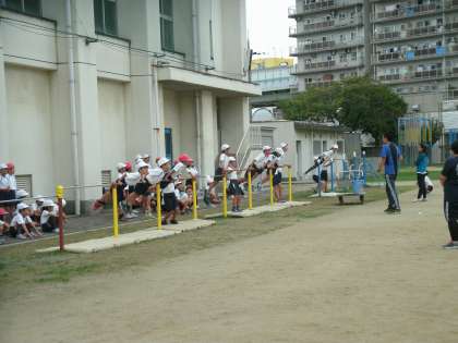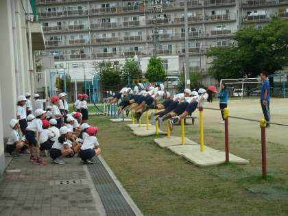 4年生は、体育の学習をしていました。鉄棒の練習をしていました。