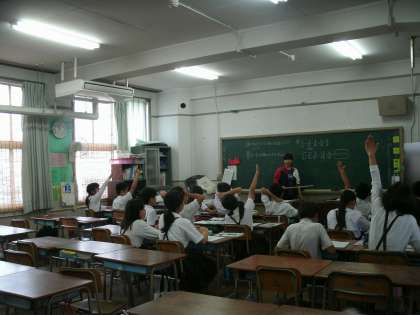 5年生は、習熟度別のクラスに分かれて算数の学習をしていました。分母のちがう分数の計算の仕方を考えていました。