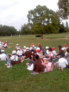 オリエンテーリングが終わりました。今からおまちかねのお弁当タイムです。