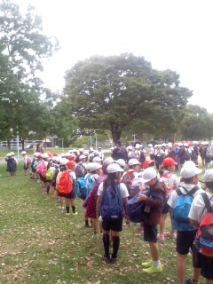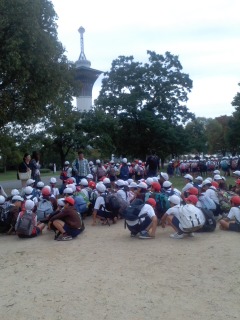 班遊びの後は、低・中・高学年に分かれて活動します。1・2年生はどんぐりひろい、3・4年生と5・6年生は時間帯をずらして咲くやこの花館を見学します。