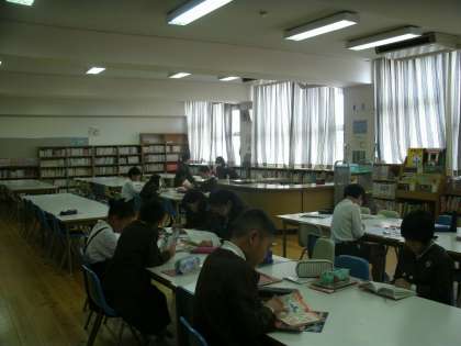 4年2組は、図書室で読書をしていました。