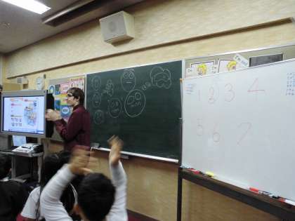 今日はビルギル先生の外国語活動の授業です。英語で数字を言うことができるように、体を動かしながら勉強していました。楽しみながらしっかり習得してほしいです。