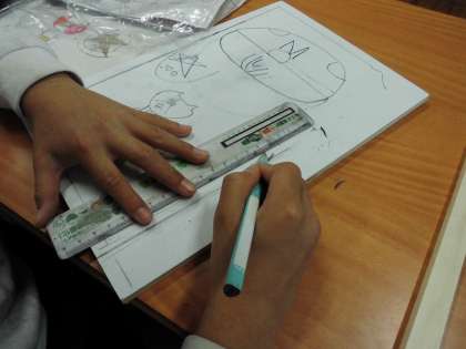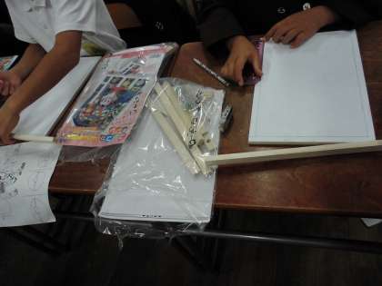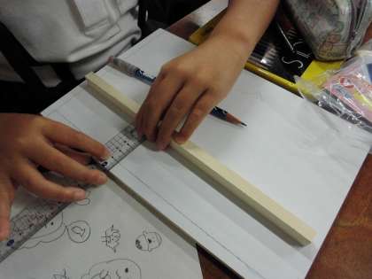図工で「コリントゲーム」の制作に取り組んでいます。今日は盤面に絵を描いたり、盤面を囲む枠やボールを打つ部分のサイズを測り盤にかきこんだりしていました。自分の思いを形にできるようにがんばってほしいです。