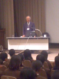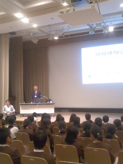 峠三吉の石碑を見た後、メモリアルホールで語り部さんのお話を聞きます。