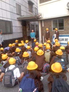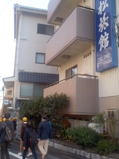 木松旅館に到着しました。開舎式の後、部屋に入ります。荷物を置いたら避難訓練をします。