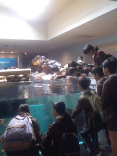 厳島神社を見学し宮島水族館に入館しました。水族館の中は班ごとに行動します。
