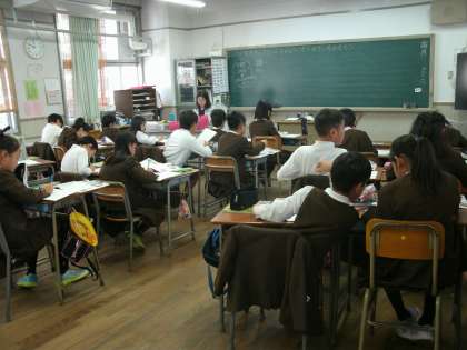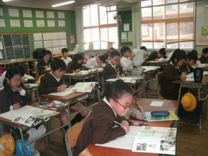 4年2組は、社会科の学習をしていました。柏原市のぶどうはどのように売られているのか、調べていました。調べた結果をとなり同士交換して確認しあっていました。
