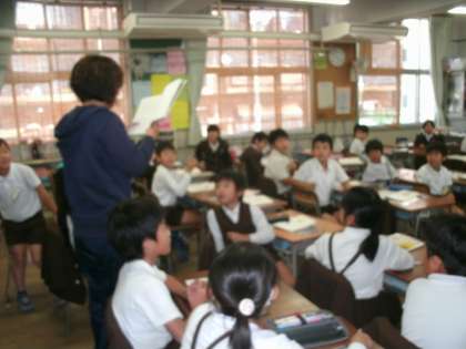 3年生は、国語の学習をしていました。「ようすをくわしく表そう」の学習の後、残りの時間を利用して、体育の「キックベースボール」のチーム分けをしているところです。