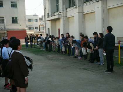 はじめに、保護者の皆さん・地域の皆さんに「よろしくおねがいします。」とあいさつをしてスタートです。