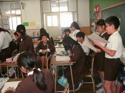 5年生は、「世界でいちばんやかましい音」の役割分担をしていました。自分の希望するセリフを挙手で決めていきますが、希望者が複数重なった場合は、「ちょっとまったー」と言い、即座にオーディションが始まります。