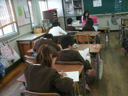 4年2組は、国語の学習をしていました。「くらしのなかの和と洋」を学習した後、漢字テストのまちがい直しをしていました。