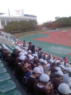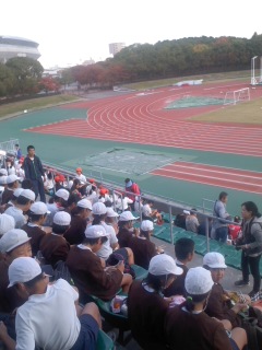 午前の種目が終了しました。第2グランドへ移動して昼食をとっています。午後からはサッカーとドッジボールをします。