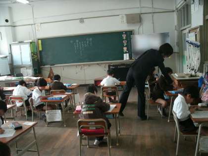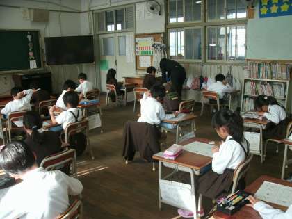 1年1組は、生活科のテストをしているところでした。問題文をしっかり読んで考えましょう。