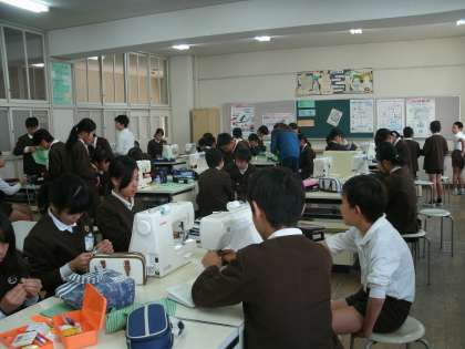6年生は、家庭科室でミシンを使っていました。お弁当箱を入れる袋を作成中でした。
