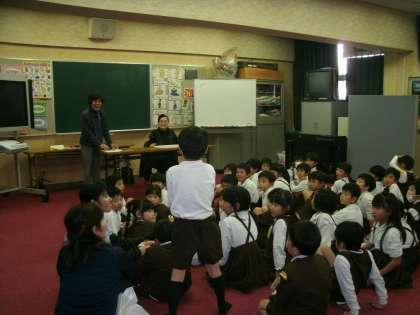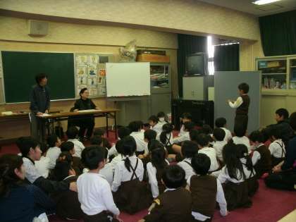 5校時、人権教室が実施されました。多目的室で1年生が学習しました。人権擁護委員のお二人による紙芝居「ずっとともだちでいたいから」を使っての学習の後、感想を出し合いました。学習後、法務省からのプレゼントとして定規セットを1年生全員がいただきました。ありがとうございました。
