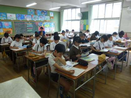 2組では、社会科のテストを返して、まちがったところを直していました。