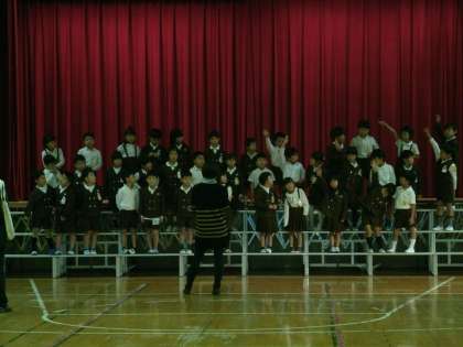 1年生は、体育館で学習発表会の練習をしていました。来週の土曜日は本番です。練習もいよいよ大詰めになってきました。