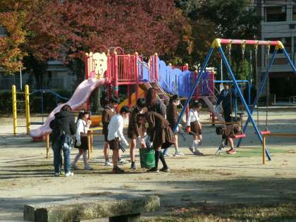 いつも遊んでいるみんなの公園を、協力してきれいにしています。