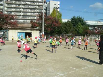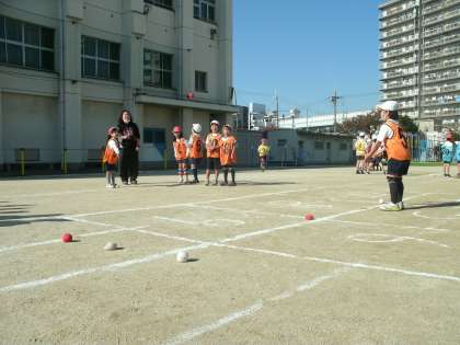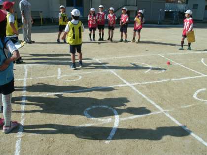 2年生は、運動場で体育をしていました。「キャッチ&スロービンゴ」をしていました。投げられたボールをキャッチできれば、キャッチしたマスをとることができます。ボールをしっかりキャッチしてマスをうめ、ビンゴをめざします。