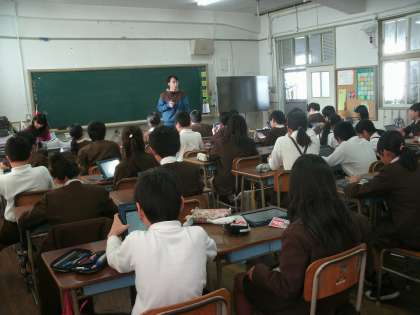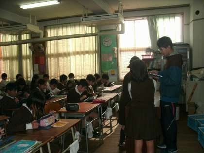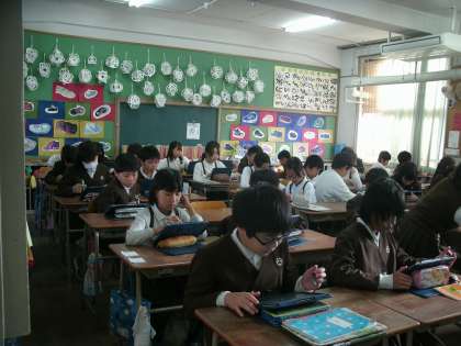 5年生は、理科の学習をしていました。川の流れと私たちの生活との関連についてプレゼンテーションを作成していました。班で役割を分担し、担当ページの構成を考えていました。