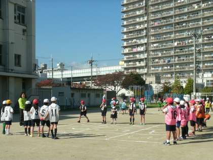 2年生は、運動場で体育をしていました。先週から取り組んでいる「キャッチ&スロービンゴ」をしていました。小さな球をキャッチするのがだんだん上手になってきました。
