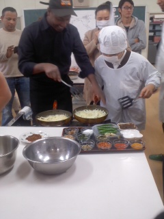 今年度は、シーニサンボル(スリランカの料理)とキルムトク(韓国のおもち)を作りました。