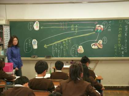 4年2組は、国語「世界一美しいぼくの村」の学習をしていました。登場人物の関係を読み取っていました。