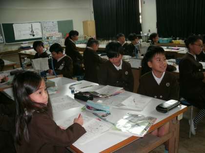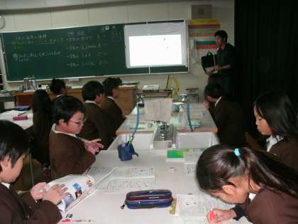 4年2組は、理科室にいました。理科の学習プリントをしていました。