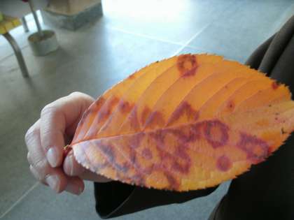 1年生は、生活科の学習で磯路公園に行きました。公園できれいに色づいた落ち葉をたくさんひろいました。「こんなにおもしろいもようの落ち葉を見つけたよ。」と見せてくれました。ヒョウ柄の落ち葉でした。