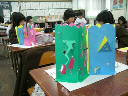 2年1組は、昨日の図画工作「まどをひらいて」の続きをしていました。楽しい窓がたくさんできていました。