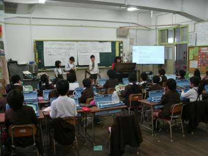 2年2組は、音楽の学習をしていました。打楽器の演奏者をじゃんけんで順番に選んでいました。