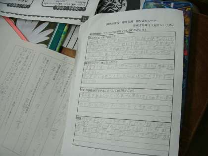3年生は、昨日の福祉学習のまとめをファイルに整理していました。