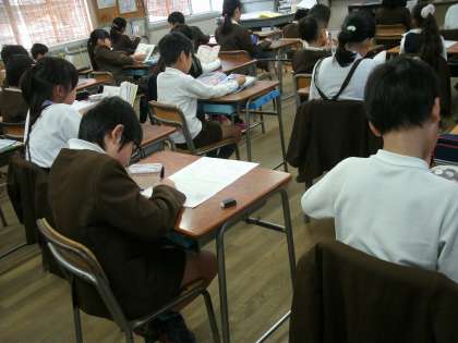 3年生は、算数のテストをしていました。テストが終わった人は、静かに学級文庫の本を読んでいました。