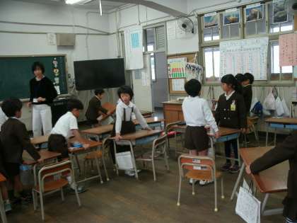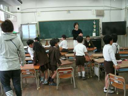 1年1組は、席替えをしていました。重い机やいすもしっかりと運べます。2人で協力して机の移動をしている児童を見つけ、担任の先生がすかさず、「自分たちで考えて、協力して運んでいますね。すごい。」と声をかけていました。