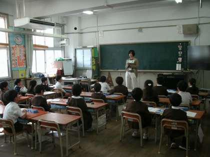 1年1組は、算数の学習をしていました。くり下がりのあるひき算のフラッシュカードで計算練習をしていました。